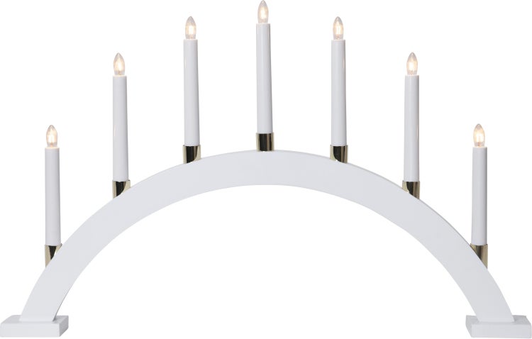 - Dieser Lichterbogen Weihnachten Strom ist 7-Flamming. Die einzelnen Lichter sehen aus wie Kerzen, die Leuchtmittel mit einer E10 Fassung sind im Lieferumfang enthalten.