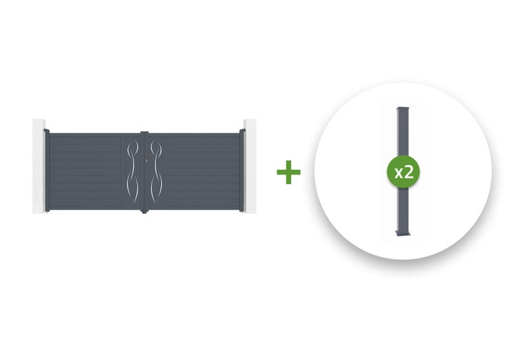 LIFE 400B160 Flügeltor-Paket + 2 EIFEL-Pfosten H.190cm Grau