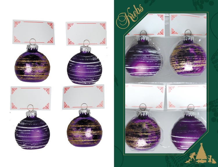 Lila glanz/matt 5cm Glaskugeln als Platzkartenhalter (4), 4 Stck., Weihnachtsbaumkugeln, Christbaumschmuck, Weihnachtsbaumanhänger