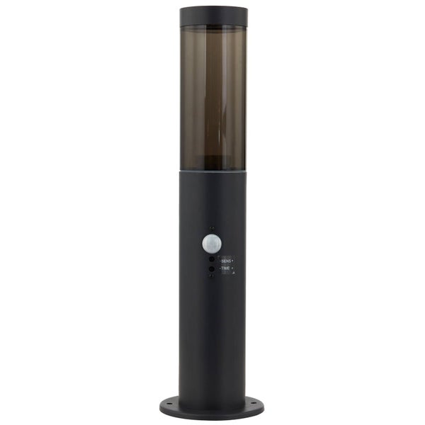 Material: Metall Farbe: anthrazit, transparent Durchmesser:7.6 cm Höhe: 45 cm Fassung: E27 Leuchtmittel: 1 x 15 W LED Betriebsspannung (V): 230 Anschlussspannung (V): 230 Schutzart: IP44 Schutzklasse: ILeuchtmittel nicht enthaltenmit Bewegungsmelder