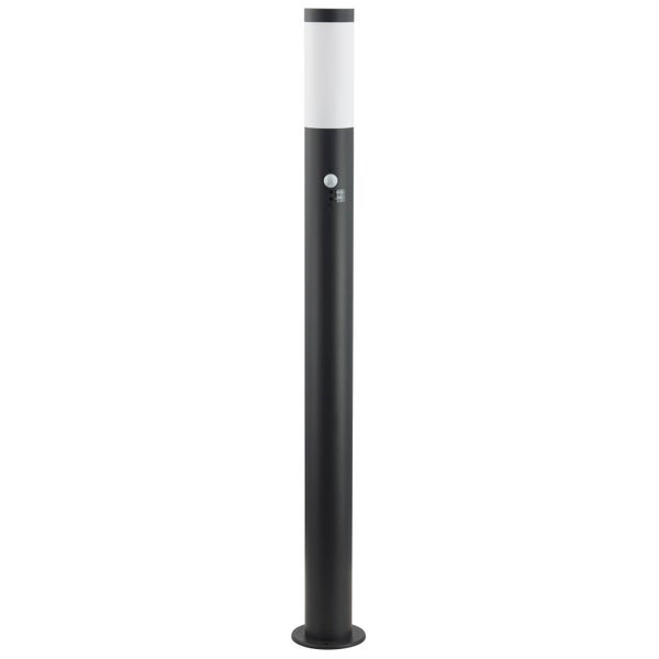 Material: Metall Farbe: anthrazit, opal Durchmesser:7.6 cm Höhe: 100 cm Fassung: E27 Leuchtmittel: 1 x 15 W LED Betriebsspannung (V): 230 Anschlussspannung (V): 230 Schutzart: IP44 Schutzklasse: ILeuchtmittel nicht enthaltenmit Bewegungsmelder