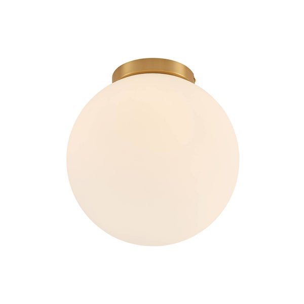 Die kugelförmige Deckenleuchte Meriala ist ein Klassiker, der nie aus der Mode kommt. Die Deckenleuchte mit Deckenelement aus Metall im mattem Messing und einem darauf sitzenden Kugelschirm aus weißem Glas spendet blendfreie Beleuchtung und passt in jeden Raum.