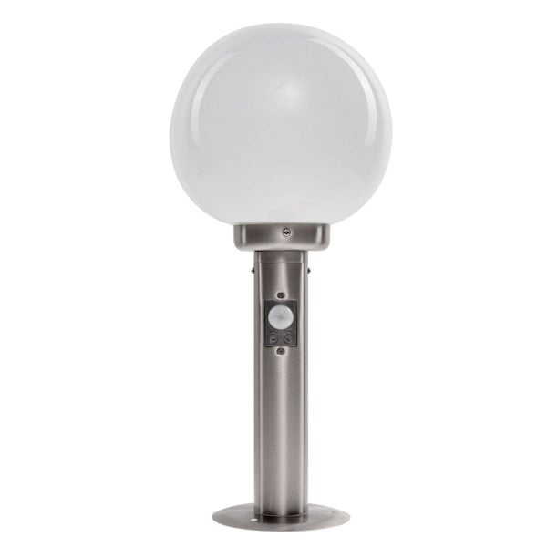 Bei Vedran handelt es sich um eine traditionelle Sockelleuchte mit einem Kugelschirm aus weißem Glas. Sie passt zu vielen Umgebungen und sorgt für gleichmäßigen Lichtschein. Mit integriertem Sensor.