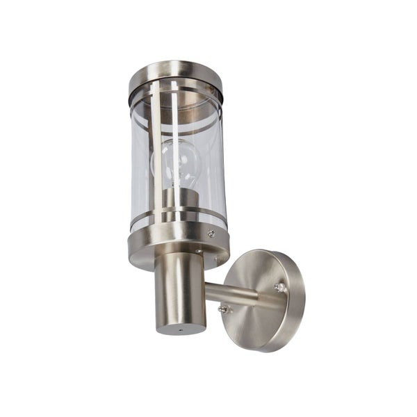 Material: Edelstahl Farbe: edelstahl, klar Breite: 10.4 cm Höhe: 28.5 cm Einbautiefe: 17.2 cm Fassung: E27 Leuchtmittel: 1 x 15 W LED Betriebsspannung (V): 230 Anschlussspannung (V): 230 Schutzart: IP44 Schutzklasse: ILeuchtmittel nicht enthalten