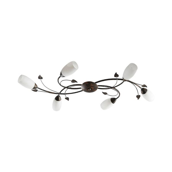 Lindby Glas Deckenlampe Florentiner Stil, Deckenstrahler Landhaus schwarz gold gebürstet ohne Leuchtmittel Deckenleuchte Küche Wohnzimmer Esszimmer