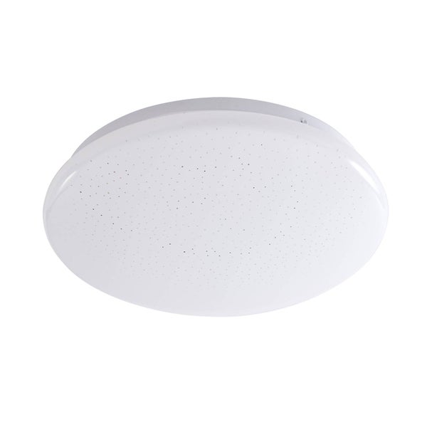Material: Kunststoff Farbe: weiß Durchmesser:28 cm Höhe: 6.5 cm Leuchtmittel: LED 12 W gesamt Anschlussspannung (V): 230 Schutzart: IP44 Schutzklasse: Iinklusive Leuchtmittel