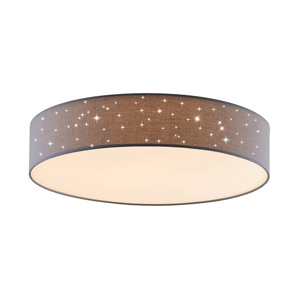Material: Textil Farbe: hellgrau Durchmesser:60 cm Höhe: 14 cm Leuchtmittel: LED 30 W gesamt Anschlussspannung (V): 230 Schutzart: IP20 Schutzklasse: IIinklusive Leuchtmittel mit Fernbedienung