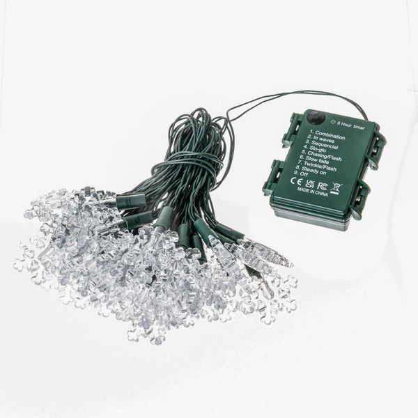 Lindby LED Lichterkette Batterie Schneeflocke Indoor Outdoor 620 cm, 30 Deko Lichter 8 Modi mit Timer Weihnachten Weihnachtsbeleuchtung Weihnachtsdeko