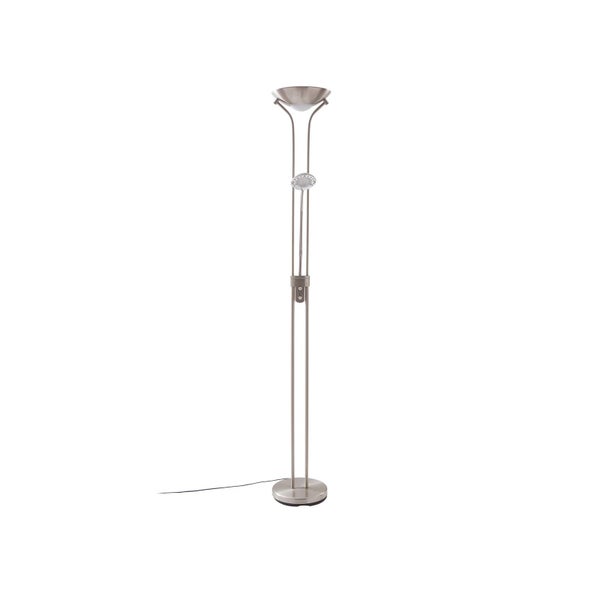 Material: Metall Farbe: nickel satiniert, weiß gefrostet Durchmesser:25.4 cm Höhe: 180 cm Leuchtmittel: 1 x 17 W LED + 1 x 5 W LED Anschlussspannung (V): 230 Schutzart: IP20 Schutzklasse: IIinklusive Leuchtmittel