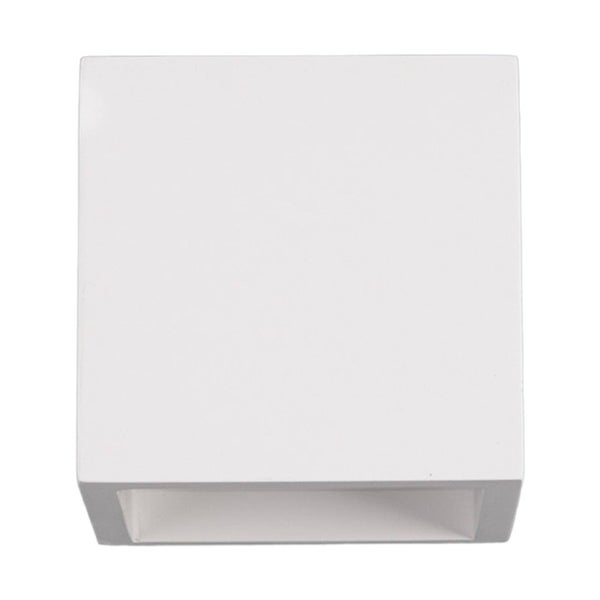 In Form eines Würfels gestaltet, kann die Wandleuchte Marita vielfältig eingesetzt werden. Sie kann zudem bemalt werden, denn die Oberfläche besteht aus weißem Gips.