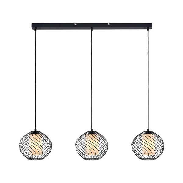 Die Hängeleuchte Cedrice hat drei Schirme in Kugelform, die wie ein Käfig gestaltet sind und innen über ein weißes Glaselement verfügen, damit der Lichtschein besonders gemütlich erscheint.