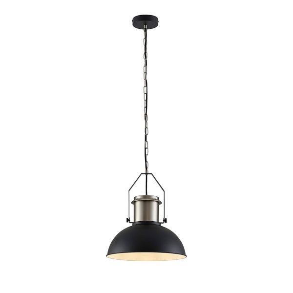 schwarzer Lackierung lässt sich zur Beleuchtung eines Tisches oder einer Theke vielseitig nutzen und bringt ein wenig industrielles Design in den Raum. Sie kann mit einem Leuchtmittel nach Wahl mit E27