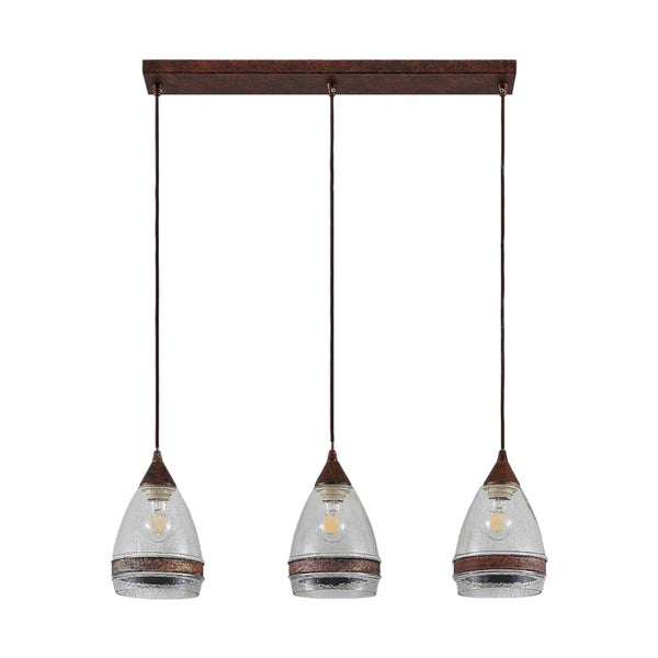 Material: Glas Farbe: rostbraun, klar Länge: 70.4 cm Breite: 15.6 cm Höhe: 25.8 cm Fassung: E27 Leuchtmittel: 3 x 15 W LED Betriebsspannung (V): 230 Anschlussspannung (V): 230 Schutzart: IP20 Schutzklasse: ILeuchtmittel nicht enthalten