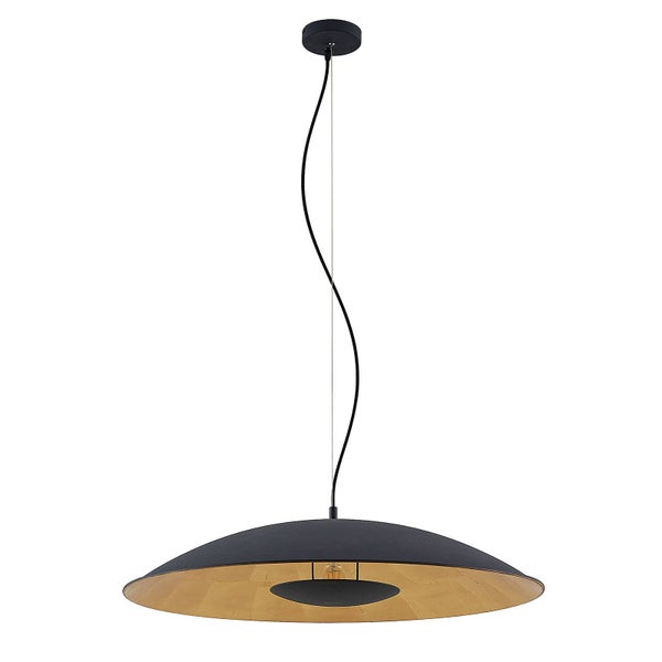 Narisara ist eine Hängeleuchte in runder Kuppelform, die außen schwarz und innen golden ist. Eine zusätzliche Abdeckung über dem Leuchtmittel sorgt für eine sanfte Abblendung. Schön für Modernes Design: Mit dem modernen und zeitlosen Design dieser stilvollen Lampe fügt sich diese in jeden Raum (z.B. Esszimmer, Wohnzimmer, Büro etc.) ein.e Wohnräume!