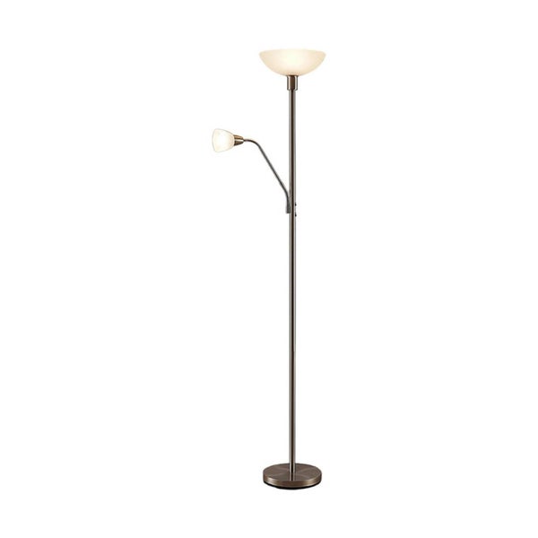 Der Deckenfluter Jost besitzt ein zusätzliches Leselicht und ist ein praktischer Lichtspender für den Wohnbereich, der eine angenehme Atmosphäre erzeugt.