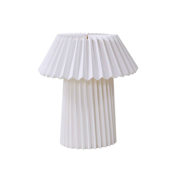 Tischleuchte mit ihrem gefalteten Schirm in Weiß nicht nur ein optisches Highlight setzt, sondern auch die Atmosphäre in Wohn