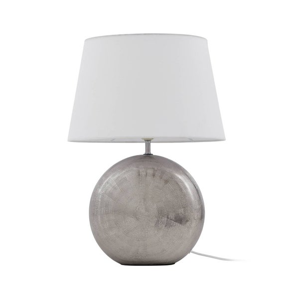 Florentino ist eine recht klassische Tischleuchte mit einem bauchigen Keramikfuß in Silber und einem weißen Stoffschirm in runder Form, der nach oben hin etwas schmäler wird. Sehr schön für gemütliche Abendstunden!