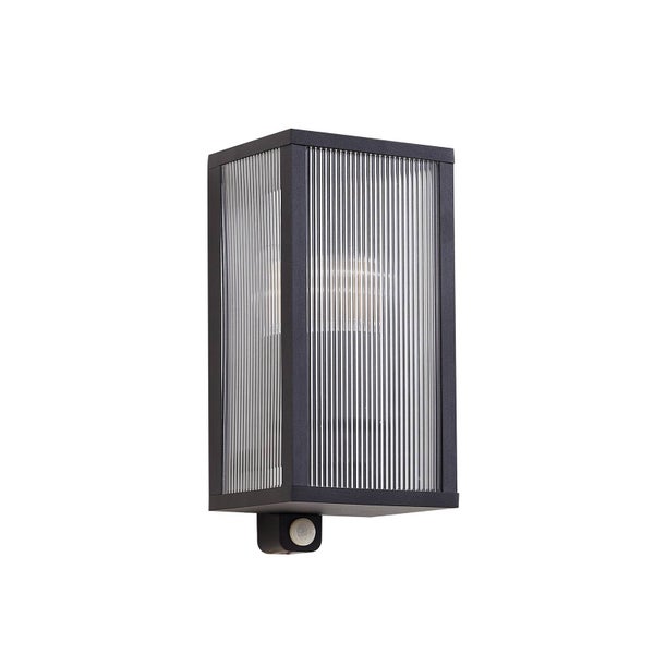 Material: Aluminium Farbe: schwarz, transparent Breite: 14 cm Höhe: 29 cm Einbautiefe: 13.5 cm Fassung: E27 Leuchtmittel: 1 x 15 W LED Betriebsspannung (V): 230 Anschlussspannung (V): 230 Schutzart: IP44 Schutzklasse: ILeuchtmittel nicht enthaltenmit Bewegungsmelder