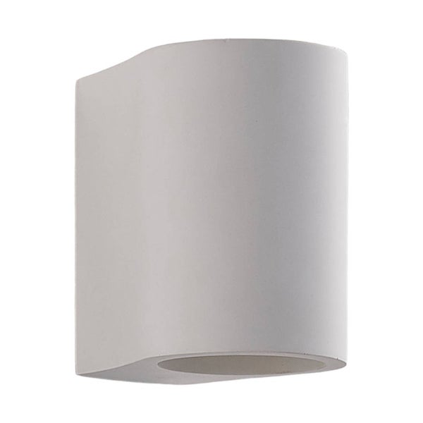 Jannes ist eine Wandleuchte mit weißer Gibsoberfläche, die ihr Licht nach oben und unten abgibt. Bei Bedarf kann sie auch angemalt bzw. gestrichen werden.