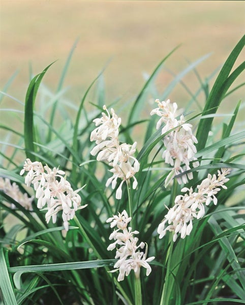 Am liebsten steht Liriope muscari halbschattig bis schattig auf humosem, durchlässigem, frischem bis mäßig trockenem Boden; kurzzeitig volle Sonne wird bei ausreichender Bodenfeuchte toleriert. Staunässe sollte vermieden werden, während eine leichte Mulchschicht die Feuchtigkeit hält und das Wurzelwerk schützt. Pflegehinweise sind unkompliziert: Im zeitigen Frühjahr alte Blätter bodennah entfernen, um den neuen Austrieb zu betonen, und etablierte Horste nach einigen Jahren teilen, wenn eine Verjüngung oder Ausbreitung gewünscht ist. In Kombination mit Farnen, Hosta und kleineren Ziergräsern entsteht ein harmonischer, texturreicher Blüten- und Blattschmuck, der Beete, Rabatten und Wege stilvoll fasst und den Gartenstrauch-Bereich unterpflanzt, ohne aufzudrängen. So überzeugt diese Blütenstaude als langlebige, pflegeleichte Strukturpflanze mit dekorativer Wirkung über viele Monate.