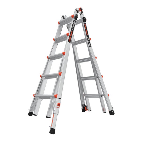 Teleskopleiter Leveler Die Verwendung einer Leiter im Freien war schon immer mit besonderen Herausforderungen verbunden aber die Little Giant® Teleskopleiter Leveler™ ändert vieles. Egal, ob Sie auf unebenem Boden arbeiten oder zum Beispiel Ihre Leiter auf einer Treppe aufstellen wollen, die Leveler kommt damit zurecht. Mit ihren integrierten Holmverlängerungen lassen sich die Leiterfüße auch unterschiedlich voneinander auf die jeweils benötigte Länge ausfahren. Die Leiter ist mit Tip & Glide Rädern ausgestattet und lässt sich daher einfach und schnell verfahren. Holmverlängerung Unebenes Gelände? Kein Problem. Mit den Ratchet™ Holmverlängerungen können Sie die Füße der Teleskopleiter in Sekundenschnelle verstellen. Dadurch können Sie die Leiter auf unebenem Boden stabilisieren. Die stufenlos verstellbaren Holmverlängerungen ermöglichen einen Ausgleich von bis zu 25cm. Top Features 1. Schnellverschlüße: Die Schnellverschlüsse an den Aussenschalen der Leiter ermöglichen eine schnelle und einfache Höhen- und Positionsverstellung. 2. Gelenke: Durch das Hineindrücken des Knaufs, lösen und verschließen Sie die Arretierung der Leiter. 3. Gummifuß: Die stabilen und rutschfesten Füße der Leveler garantieren einen sicheren Stand. Arbeitsbühne Die Leveler™ kann auch als Arbeitsbühne verwendet werden. Indem Sie die Außenteile der Leiter entfernen und mit der Bockhalterung verbinden, haben Sie zwei einzelne Böcke. Danach brauchen Sie die Teleskopbohle nur noch auf die gewünschte Höhe einlegen. *Bockhalterungen und Teleskopbohle sind separat erhältlich. Highlights der Teleskopleiter Dank der multifunktionalen Bauweise lässt sich die Leveler als Stehleiter, Anlegeleiter und Treppenleiter verwenden. Durch die geringen Transportmaße lässt sich die Leiter auch in einem PKW verstauen. Durch die integrierten Holmverlängerungen lassen sich Bodenunebenheiten sowie Treppenstufen ausgleichen. Federunterstützste Schnellverschlüsse sorgen für eine schnelle Höhenverstellung. Die stabilen und rutschfesten Gummifüße verleihen der Teleskopleiter noch mehr Standfestigkeit. 5 Jahre Garantie Großes Zubehör Sortiment Erhältlich in 3 verschiedenen Größen FAQs Was ist die Little Giant Leveler?Die Little Giant Leveler ist eine multifunktionale Teleskopleiter mit verstellbaren Beinen. Sie eignet sich ideal für unebene Böden, Treppen und verschiedene Arbeitshöhen. Dank ihrer Vielseitigkeit kann sie als Stehleiter, Anlegeleiter, 90°-Leiter oder Treppenleiter genutzt werden. Wie funktioniert die Höhenverstellung der Little Giant Leveler?Die Leiter verfügt über patentierte Rapid-Locks und Palmbuttons, die eine schnelle Anpassung der Leiter ermöglichen. Die Holmverlängerungen können Stufenlos per Fuß ausgefahren werden. Dadurch können Sie die Leiter stabil auf unebenem Gelände aufstellen. Die Leveler ist somit flexibel und sicher in jeder Arbeitsumgebung. Welche tragfähigkeit hat die Teleskopleiter Leveler?Die Leveler ist für bis zu 150 kg ausgelegt, unabhängig von der gewählten Konfiguration. Sowohl als Stehleiter oder Anlegeleiter bietet sie maximale Sicherheit und Stabilität. Welches Zubehör ist für die Little Giant Leveler erhältlich?Folgende Zubehörteile erhöhen den Komfort und die Einsatzmöglichkeiten:Cargo Hold: Praktischer Werkzeughalter für die oberste Stufe.Ladder Rack: Für sicheren Transport und Lagerung.Platform Pro: Zusätzliche Arbeitsplattform für mehr Stabilität.Plank: Verwandel deine Leveler in ein ArbeitsgerüstBrackets: Leiterverbinder um aus deiner Leveler zwei Arbeitsböcke zu machen. Gibt es eine Garantie für die Little Giant Leveler?Ja, die Little Giant Leveler wird mit einer 5-jährigen Herstellergarantie geliefert. Sie deckt Herstellungsfehler ab und sorgt für eine lange Lebensdauer der Leiter. Regelmäßige Pflege und richtige Nutzung verlängern die Haltbarkeit zusätzlich. Warum sollte ich die Little Giant Leveler kaufen?Die Little Giant Leveler ist eine der vielseitigsten Leitern auf dem Markt. Sie lässt sich in Sekunden an unebene Böden, Treppen und verschiedene Arbeitshöhen anpassen. Mit nur einer Leiter können Sie mehr als vier Leiterarten ersetzen, das spart Platz, Zeit und Geld. ✅ Integrierte Holmverlängerung: Für zusätzliche Flexibilität. ✅ Vielseitig einsetzbar: Als Steh-, Anlege-, 90°- und Treppenleiter nutzbar. ✅ Weit ausgestellte Holme: Sorgen für einen perfekten Stand. ✅ Leichtes Aluminium: Robuste und dennoch leichte Konstruktion. ✅ Einfache Handhabung: Ausgestattet mit Rollen für leichten Transport. ✅ Schnelle Anpassungen: Druckgelenke und Schnellspanner ermöglichen eine unkomplizierte Höhenverstellung.