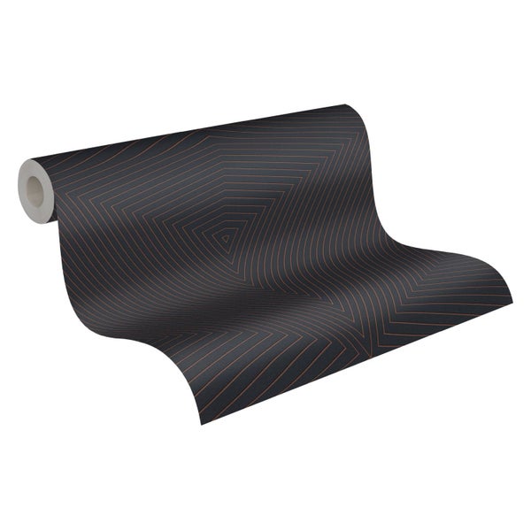 Livingwalls Tapete geometrisches Motiv Schwarz und Bronze 53 cm x 10.05 m