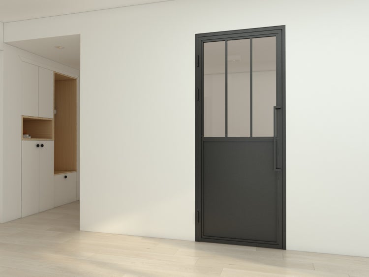 Die Stahltüren mit Zarge werden aus 4mm starkem Sicherheitsglas gefertigt. Bei der Rahmung der Stahl-Loft-Türen handelt es sich um pulverbeschichteten Stahl, welcher sowohl mit seiner Kratz- als auch Stoßbeständigkeit überzeugt. Für die nötige Sicherheit sorgen außerdem drei zuverlässige Scharniere sowie ein praktischer Magnetschließer.