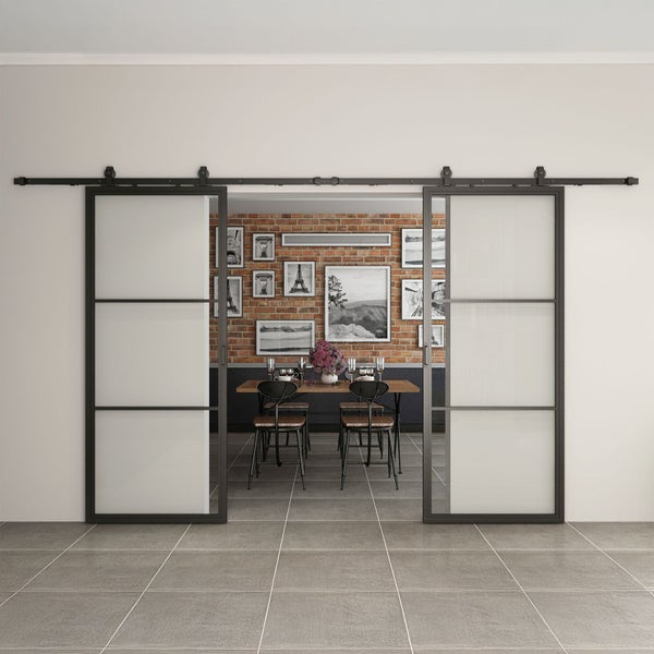 Doppelflügelige Glasschiebetür Loftstyle offene Laufschiene