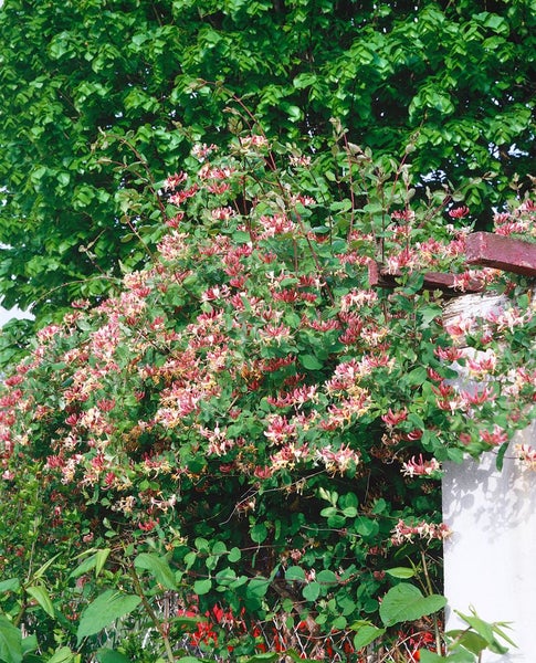 Lonicera periclymenum 'Serotina', Geißblatt, rot-gelb, 40–60 cm