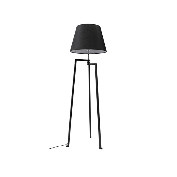 Stehlampe sehr elegant wirken. Die Justierbarkeit der drei Beine mithilfe der Gelenke ermöglicht eine individuelle Anpassung an die Umgebung. Durch den textilen, dunklen Schirm gelangt ein sehr gedämpftes, blendfreies Licht in den Raum, das für Gemütlichkeit sorgt.