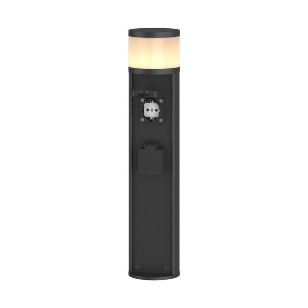 Sockelleuchte Corban sorgt nicht nur für die richtige Beleuchtung im Außenbereich, sondern bietet zusätzlich noch einen Anschluss an das Stromnetz. In den zylinderförmigen Korpus der Leuchte sind nämlich zwei Steckdosen eingebaut, die bis zu einer Gesamtleistung von 3.680 Watt belastbar sind. Für ein warmweißes Licht sorgt die fest verbaute LED Leuchte: Strom sparen mit Lucande – Die Modernes Design: Mit dem modernen und zeitlosen Design dieser stilvollen Lampe fügt sich diese in jeden Raum (z.B. Esszimmer, Wohnzimmer, Büro etc.) ein.e LED Lampe ermöglicht energiesparend und energieeffizient Ihr Zuhause (z.B. Wohnzimmer, Esszimmer, Schlafzimmer, Küche, Flur) oder Büro mit angenehmen Licht zu beleuchten. am oberen Ende der Leuchte.