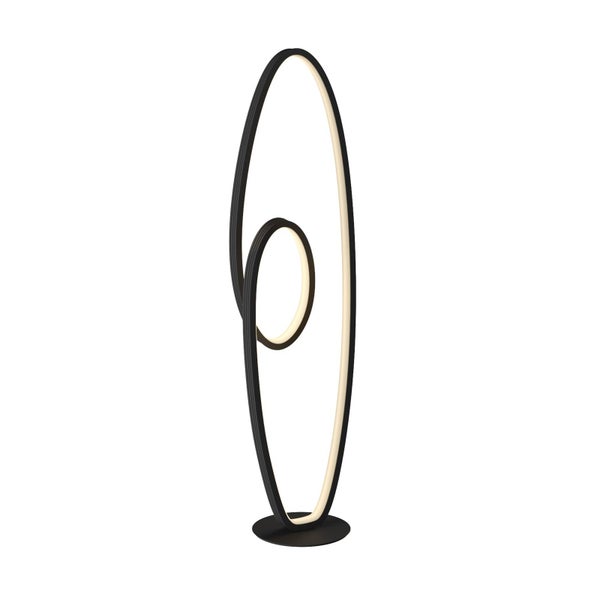 Stehleuchte Bronwyn mit ihren verschlungenen Bögen ist ein richtiger Blickfang. Dieser Eindruck wird durch den Kontrast der Farben Anthrazit außen und Weiß innen noch mehr intensiviert. Es ist möglich, die Leuchte mit dem Schalter stufenlos zu dimmen.
