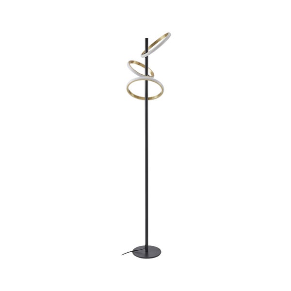 Lichtquelle sorgt sie für ein angenehmes und helles Licht, das rundherum verteilt wird, denn über die Außenbahn der Ringe ist das Modul wie ein Lichtband verteilt. Der enthaltene Dimmer ermöglicht es die Helligkeit individuell anzupassen und so eine gemütliche Atmosphäre zu schaffen. Die ringförmigen Elemente der Stehleuchte verleihen ihr zudem eine besondere Optik und machen sie zu einem echten Hingucker.