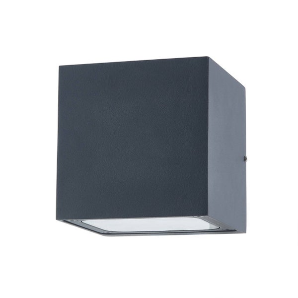 Außenwandleuchte Merjem, die aus einem dunkelgrau lackiertem Aluminiumkörper besteht.
