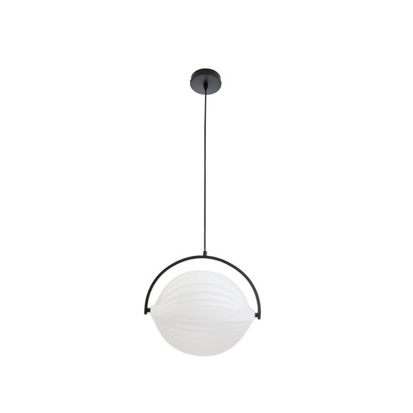 Die Hängeleuchte Helva ist einflammig und besteht aus Eisen und Kunststoff. Sie besitzt eine schwarze und weiße Farbgebung.