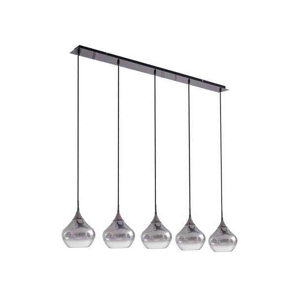 Material: Glas Farbe: rauchgrau, schwarz Länge: 132 cm Breite: 20 cm Höhe: 17.5 cm Fassung: E27 Leuchtmittel: 5 x 15 W LED Betriebsspannung (V): 230 Anschlussspannung (V): 230 Schutzart: IP20 Schutzklasse: ILeuchtmittel nicht enthalten