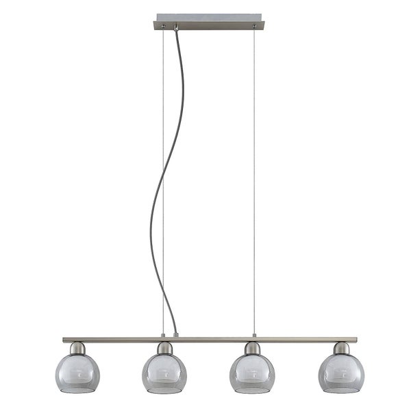 Material: Metall Farbe: nickel, weiß, rauchgrau Durchmesser:14 cm Länge: 95 cm Breite: 14 cm Fassung: E14 Leuchtmittel: 4 x 40 W Betriebsspannung (V): 230 Anschlussspannung (V): 230 Schutzart: IP20 Schutzklasse: ILeuchtmittel nicht enthalten