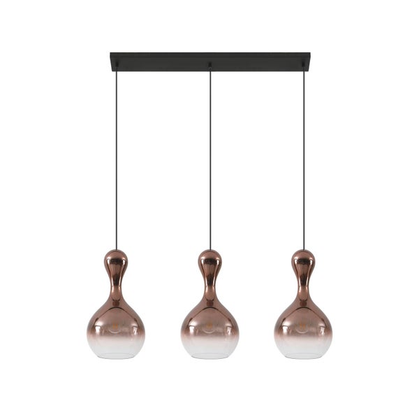 Material: Glas Farbe: kupfer, schwarz Durchmesser:22 cm Länge: 97 cm Fassung: E27 Leuchtmittel: 3 x 15 W LED Betriebsspannung (V): 230 Anschlussspannung (V): 230 Schutzart: IP20 Schutzklasse: ILeuchtmittel nicht enthalten