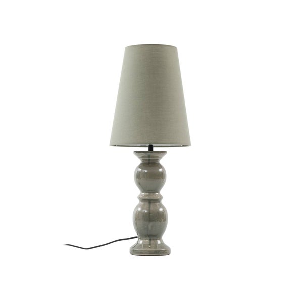 Die Tischleuchte Lyndorin ist aus Textil und Keramik hergestellt. Sie kann mit E27