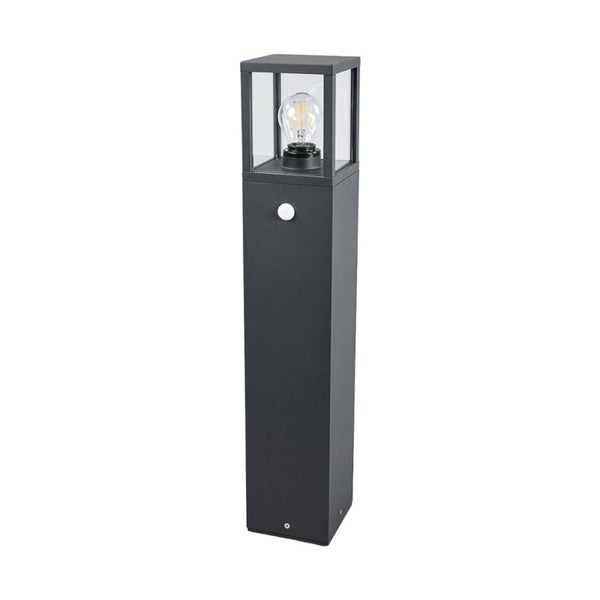 Material: Aluminium Farbe: anthrazit, klar Länge: 12 cm Breite: 12 cm Höhe: 65 cm Fassung: E27 Leuchtmittel: 1 x 15 W LED Betriebsspannung (V): 230 Anschlussspannung (V): 230 Schutzart: IP54 Schutzklasse: ILeuchtmittel nicht enthaltenmit Bewegungsmelder