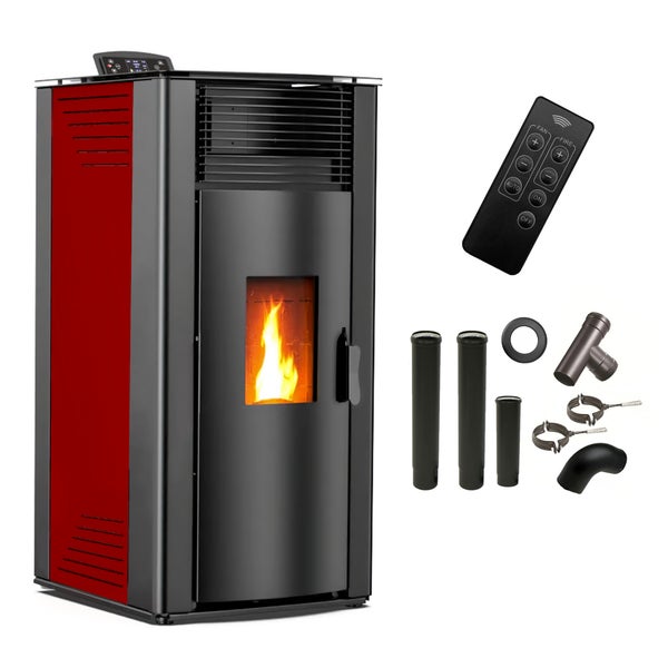 Luft- Pelletofen Anita 15 Sannover Bordeaux 12.8 kW + Kaminbau-Anschluss-Set