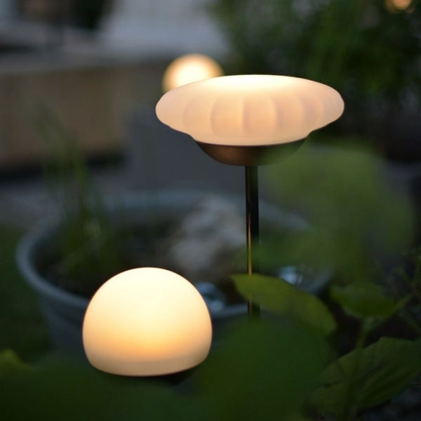 Die Designleuchten, welche Blumenformen nachempfunden sind, werden auf den dazugehörigen Stab aufgesteckt und lassen sich so in nahezu jedem lockeren Untergrund, genauso wie im Pflanztopf platzieren. Zu einem leuchtenden Bouquet arrangiert oder auch einzeln gesteckt, die elegant fließenden Blumenformen fügen sich wundervoll harmonisch in die Gartenlandschaft ein.