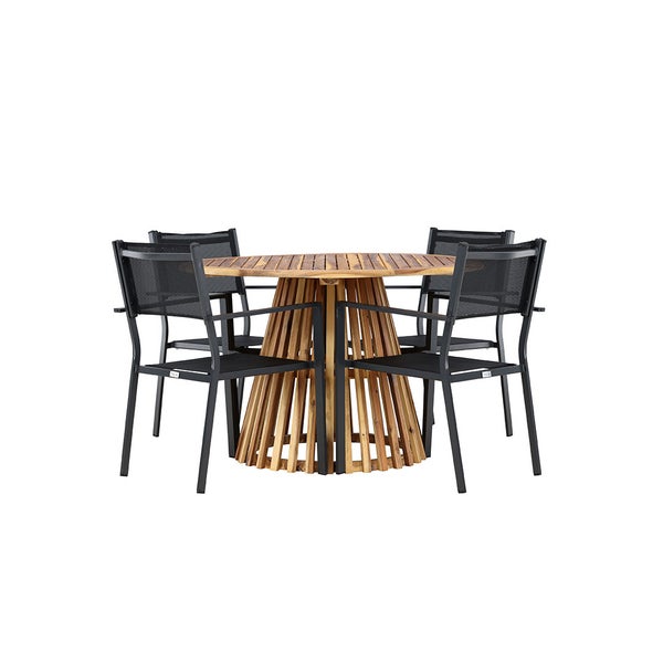 Lumpur Gartenset Tisch Ø120cm natur, 4 Stühle schwarz. 120 X 120 X 75 cm