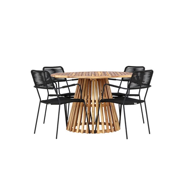 Lumpur Gartenset Tisch Ø120cm natur, 4 Stühle schwarz. 120 X 120 X 75 cm