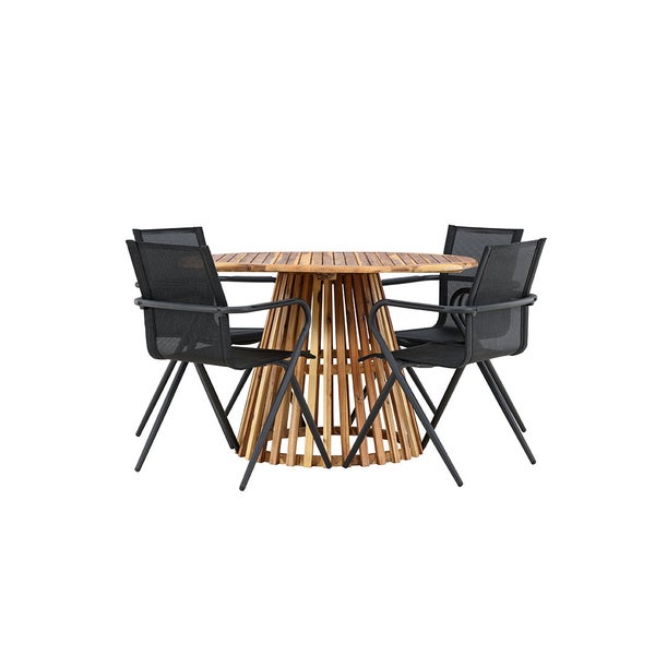 Lumpur Gartenset Tisch Ø120cm natur, 4 Stühle schwarz. 120 X 120 X 75 cm