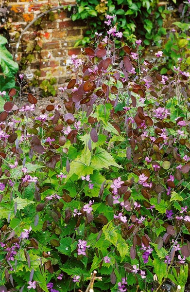 Lunaria rediviva, die Ausdauernde Mondviole oder das Ausdauernde Silberblatt, ist eine elegante Waldgarten-Staude mit besonderem Zierwert. Von Mai bis Juni öffnet diese Gartenstaude ihre zartlila bis weißlich-violetten, leicht duftenden Blüten in lockeren Trauben, die sich über dem attraktiven Laub erheben. Die großen, herzförmigen, sommergrünen Blätter bilden einen dekorativen Hintergrund und betonen den ausdrucksvollen, aufrechten, locker verzweigten Wuchs. Im Sommer entwickeln sich die charakteristischen, transparent schimmernden Samenstände – die berühmten “Silberlinge” –, die lange zierend bleiben und sich hervorragend für Trockensträuße und floristische Arrangements eignen.