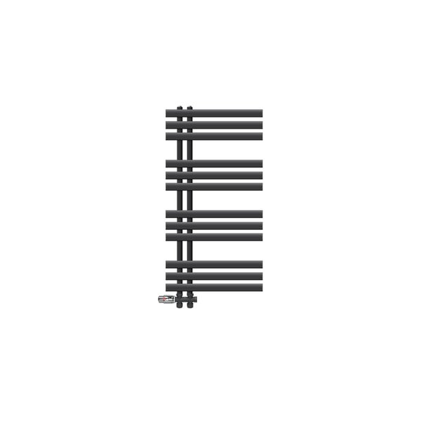 LuxeBath Badheizkörper Iron EM 500x1000 mm Anthrazit Mittelanschluss mit Anschlussgarnitur Thermostat Durchgang Boden, Design Heizkörper Bad Heizung Handtuchwärmer Handtuchtrockner Handtuchheizkörper