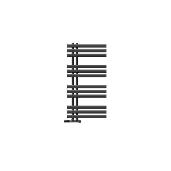 LuxeBath Badheizkörper Iron EM 500x1000 mm Anthrazit Mittelanschluss mit Anschlussgarnitur und Thermostat Eck Wand, Design Heizkörper Bad Heizung Handtuchwärmer Handtuchtrockner Handtuchheizkörper
