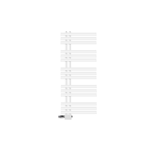 LuxeBath Badheizkörper Iron EM 500x1200 mm Weiß Seitenanschluss mit Anschlussgarnitur Thermostat Universal Eck- und Durchgangsform, Design Heizkörper Handtuchwärmer Handtuchtrockner Handtuchheizkörper