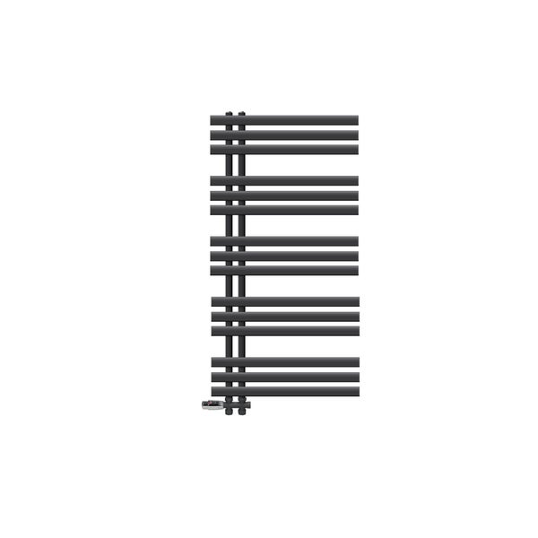 LuxeBath Badheizkörper Iron EM 600x1200 mm Anthrazit Mittelanschluss mit Anschlussgarnitur Thermostat Durchgang Boden, Design Heizkörper Bad Heizung Handtuchwärmer Handtuchtrockner Handtuchheizkörper
